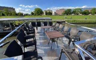 Katamaran Queen Eva jest najnowszą luksusową jednostką w Krakowie. Posiada dwa pokłady – w tym pokład górny widokowy.